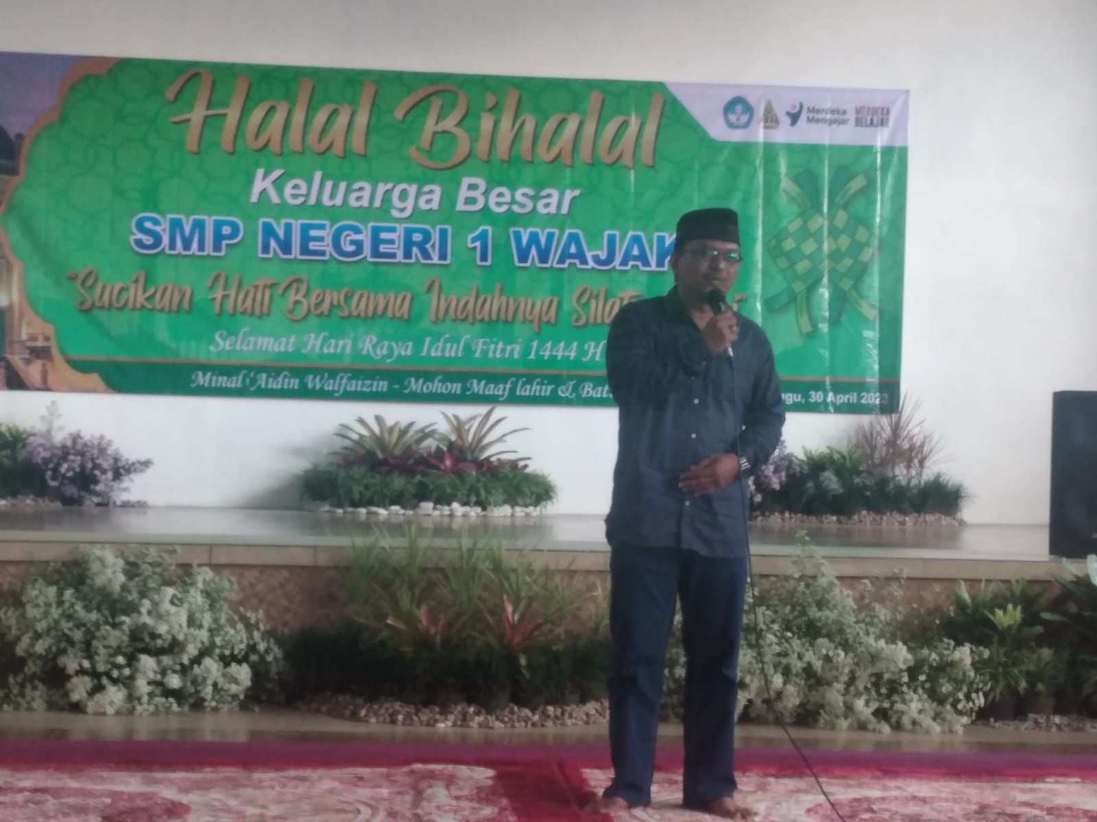 Pada hari Minggu, 30 April 2023 SMP Negeri 1 Wajak mengadakan kegiatan halal bihalal yang bertempatan di Aula terbuka SMP Negeri 1 Wajak. Acara ini dihadiri oleh kepala SMP Negeri 1 Wajak Bapak Margo Sujono Hadi, para kepala SMP Negeri 1 Wajak periode sebelumnya, Bapak/Ibu guru baik yang masih aktif mengajar di SMP Negeri 1 Wajak maupun yang sudah purna atau mutasi. Dalam sambutannya, Bapak Kepala SMP Negeri 1 Wajak mengucapkan selamat hari raya idul fitri 1444H. Selain itu beliau juga berterimakasih kepada kepala sekolah periode sebelumnya atas jasa-jasa yang telah diberikan untuk SMP Negeri 1 Wajak.