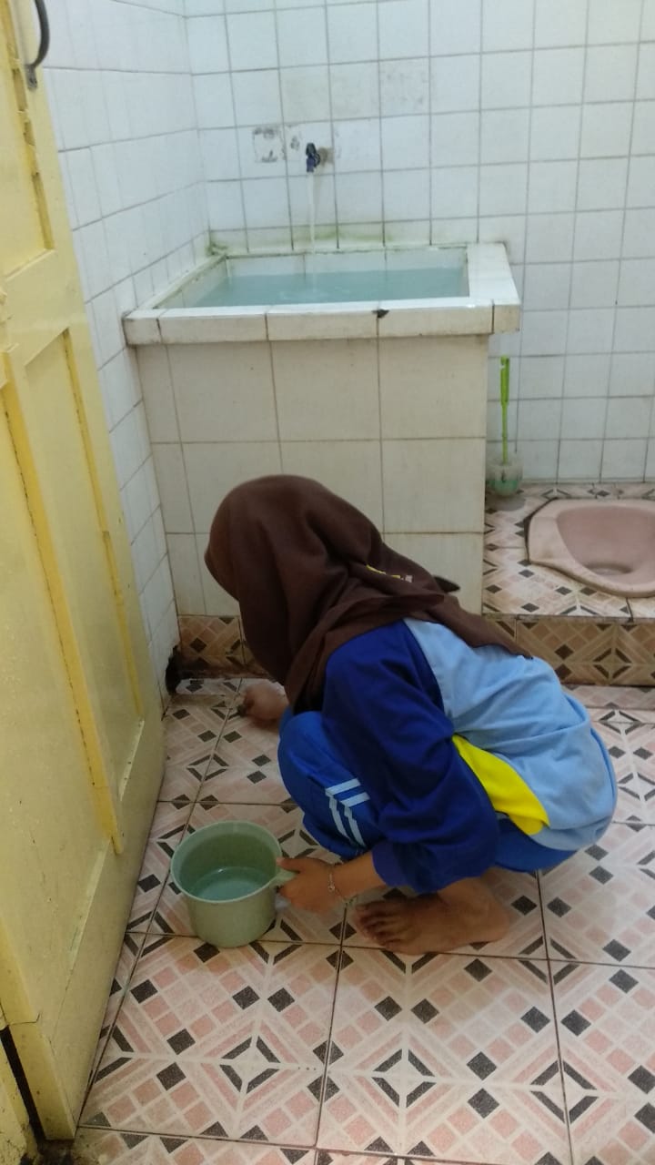 KEGIATAN MENJAGA KEBERSIHAN KAMAR MANDI OLEH ANGGOTA POKJA DEMI KESEHATAN DAN KENYAMANAN BERSAMA